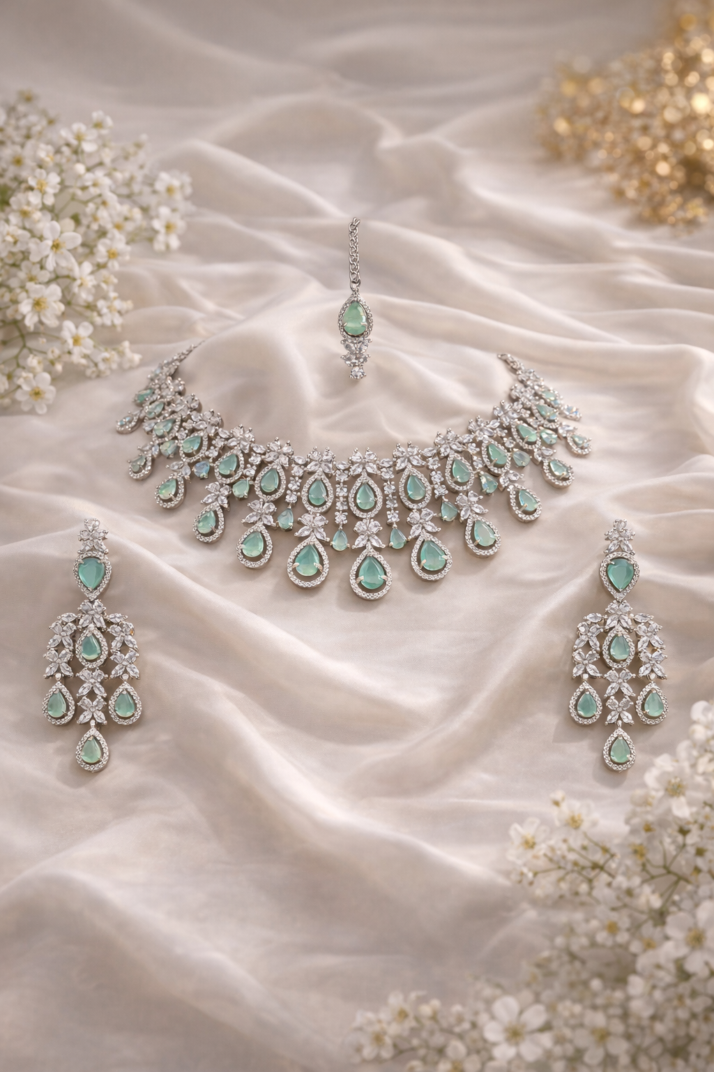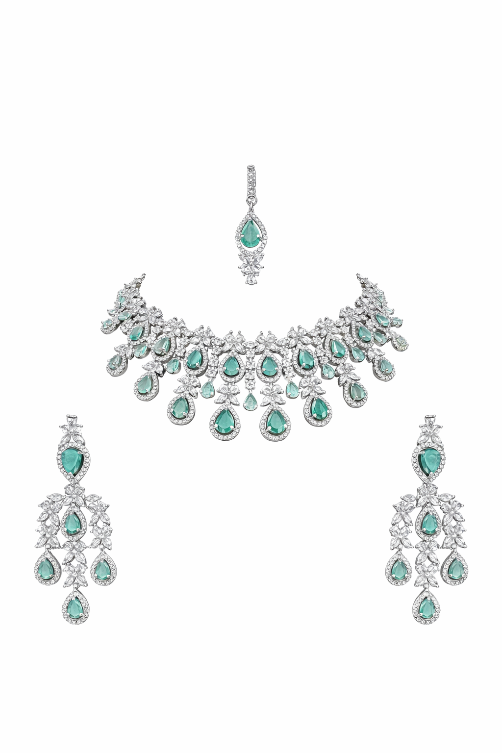 Elegant Green Stone AD Necklace with Matching Earrings