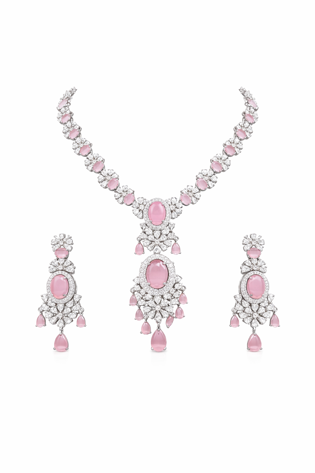 Elegant Pink Stone AD Necklace Set with Intricate Design