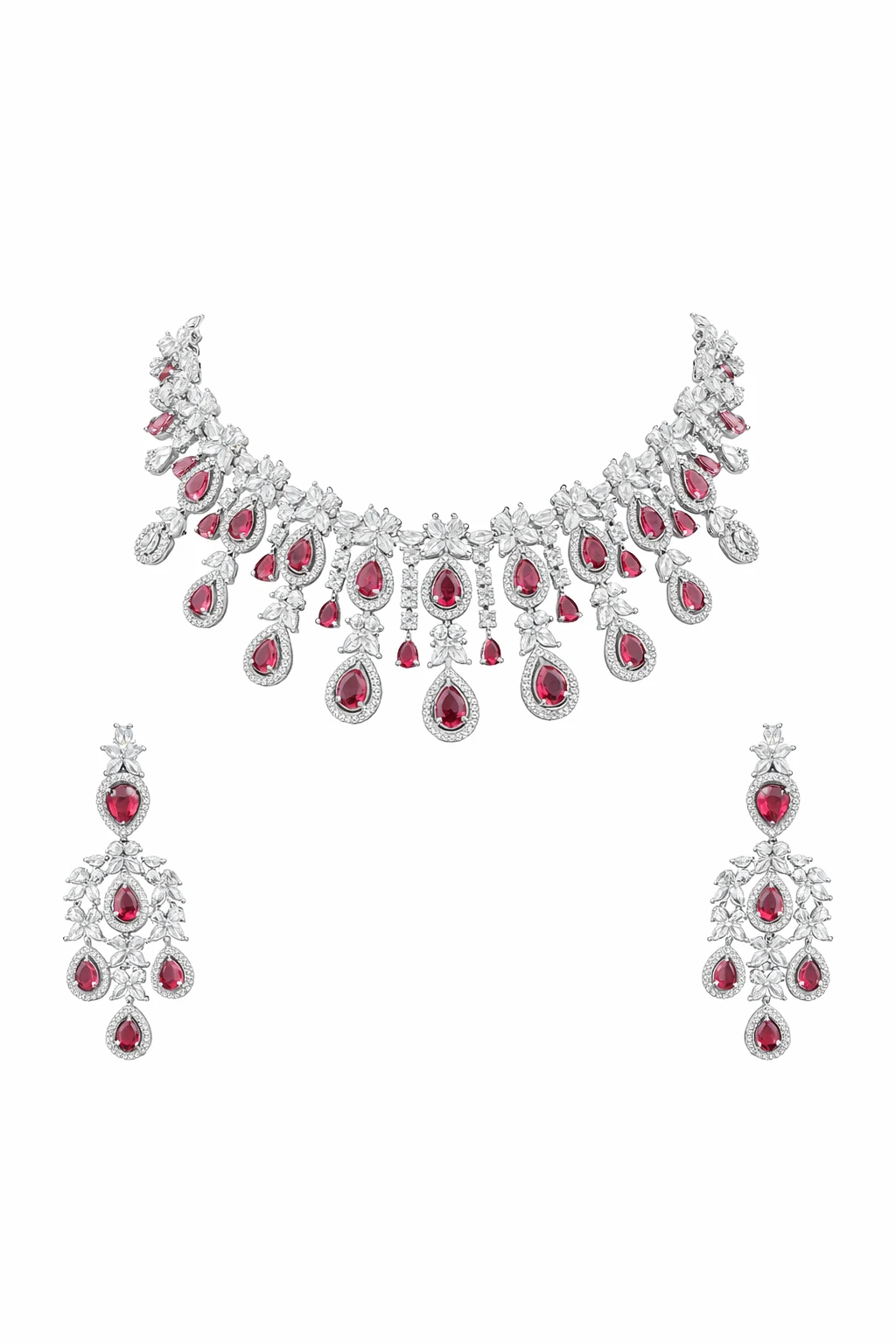 Elegant Ruby Red and CZ Statement Necklace Set