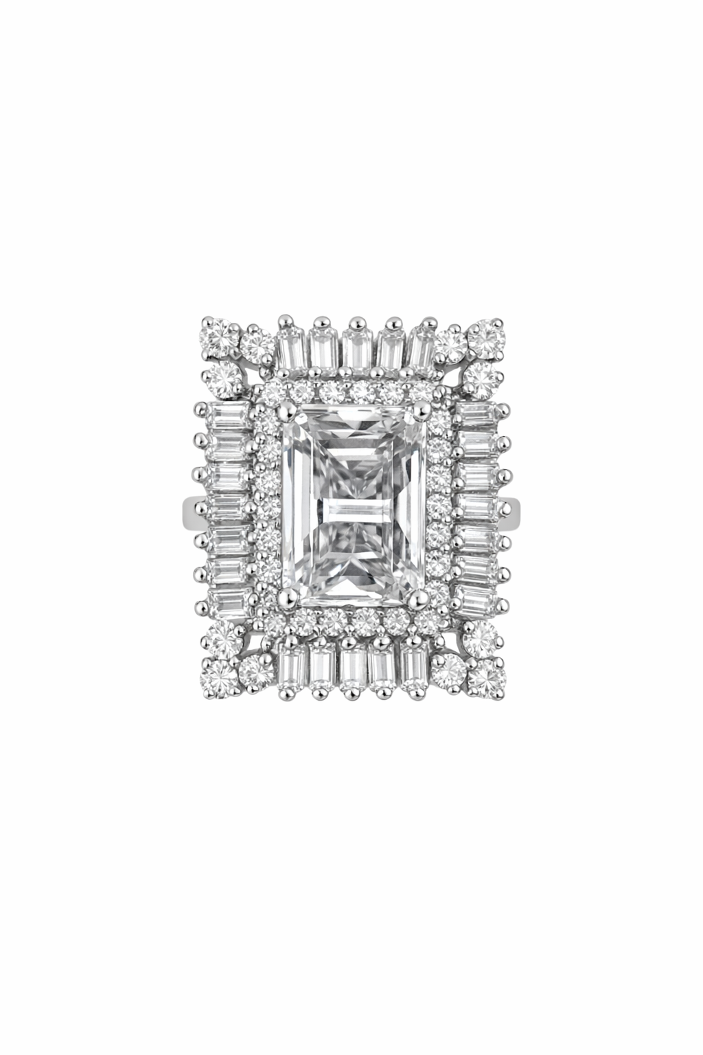 Elegant Rectangular AD Ring with Radiant Crystal and Diamonds