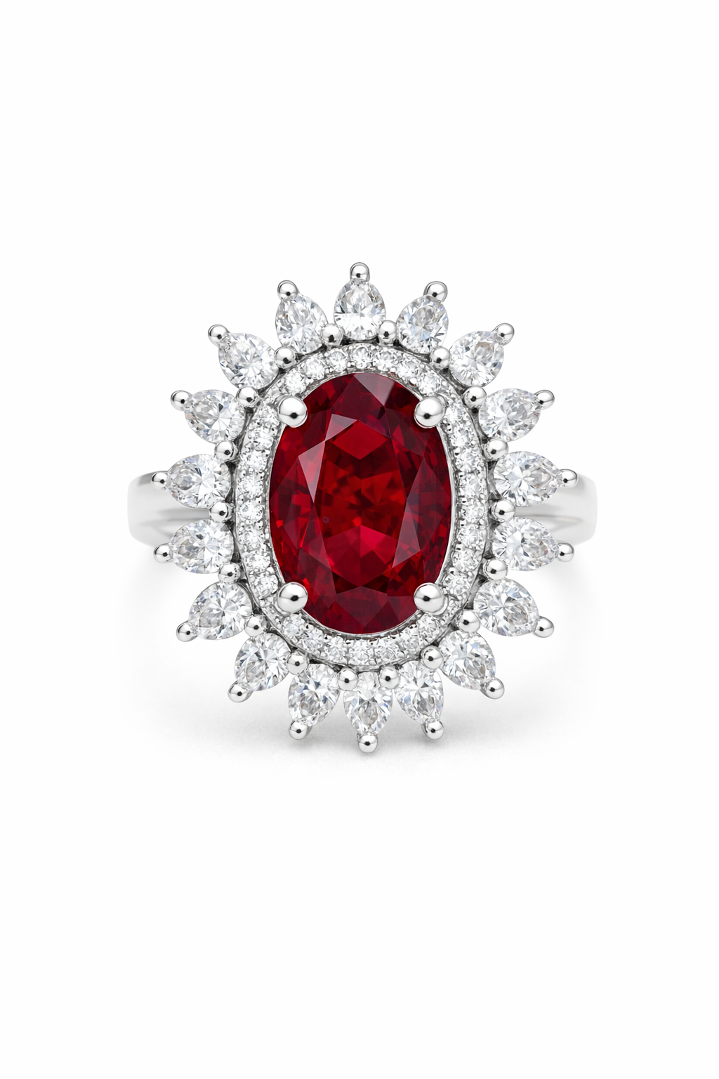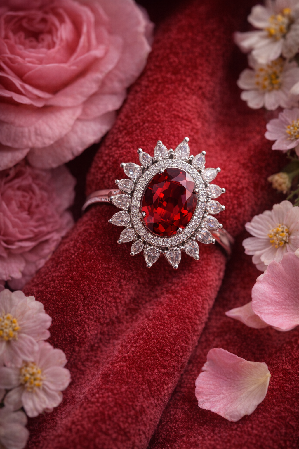 Elegant Ruby Red AD Ring with Diamond Accents