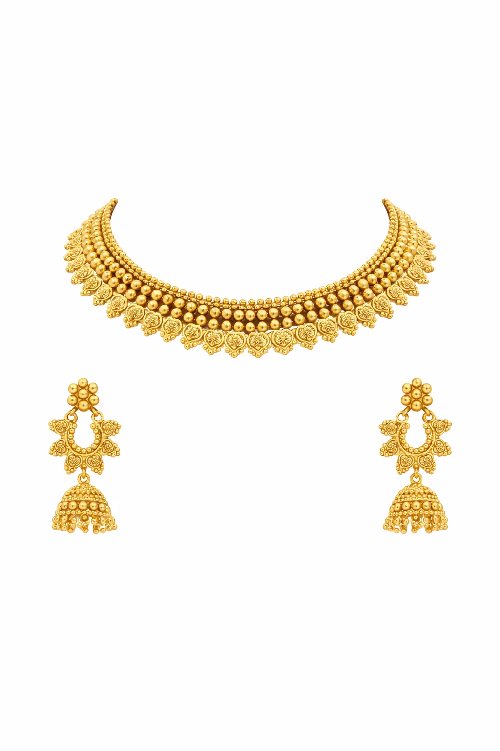 Antique Gold-Plated Necklace Set with Intricate Motifs