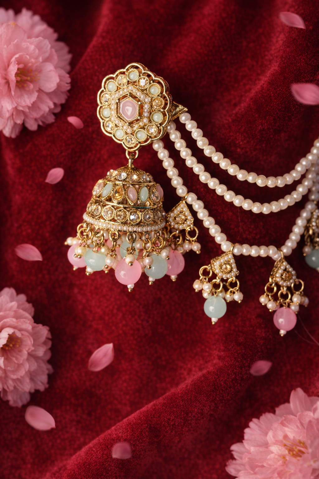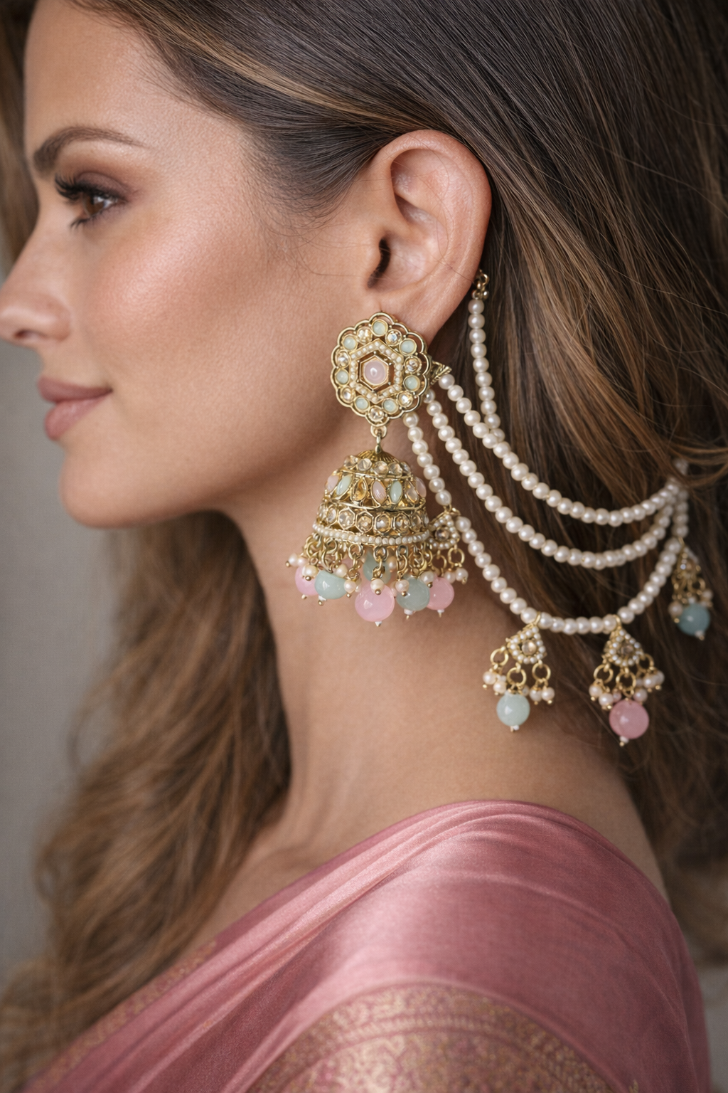 Traditional Bahubali Earrings with Pearls and Pastel Beads