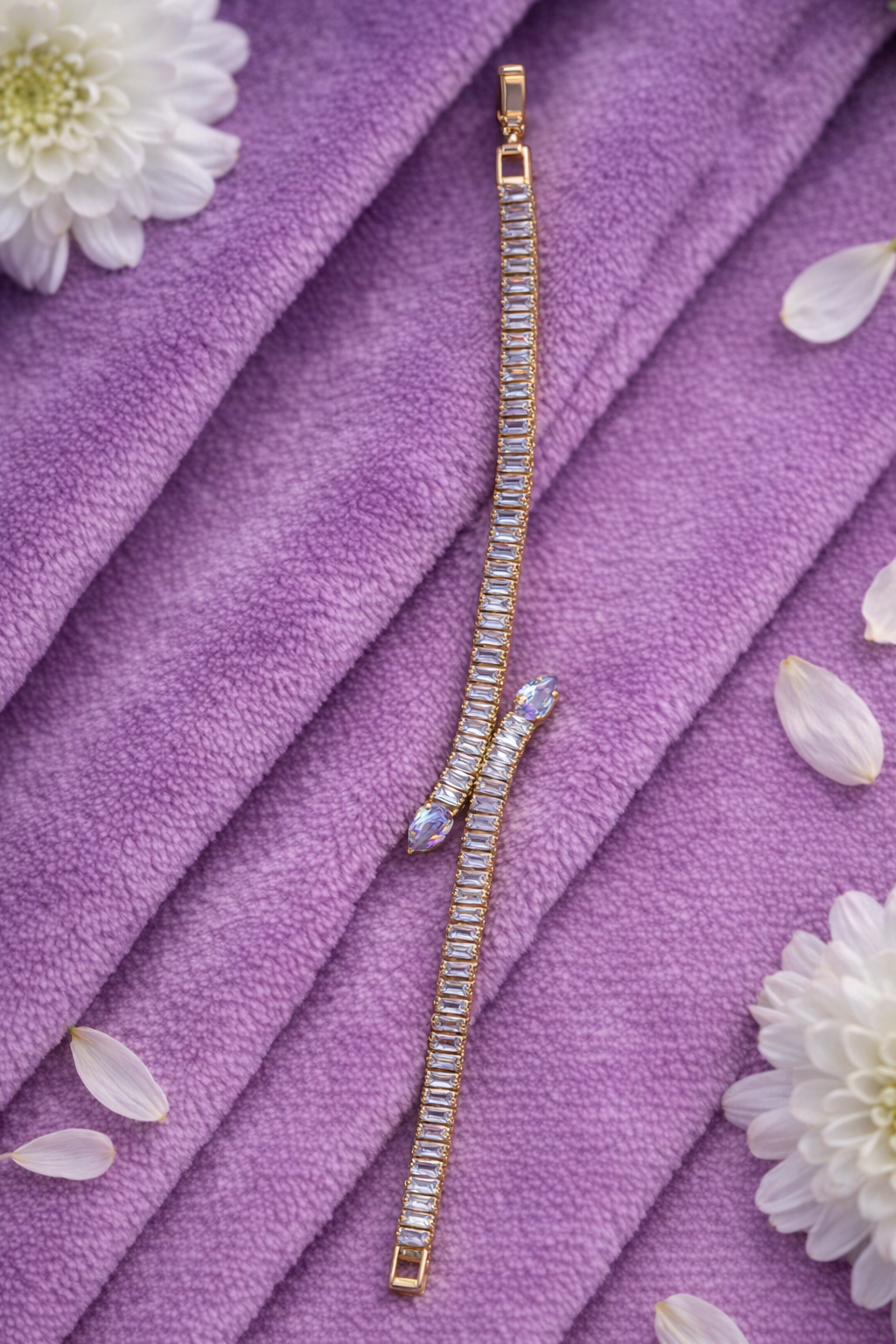 Elegant Gold Snake Design Bracelet with Baguette Diamonds