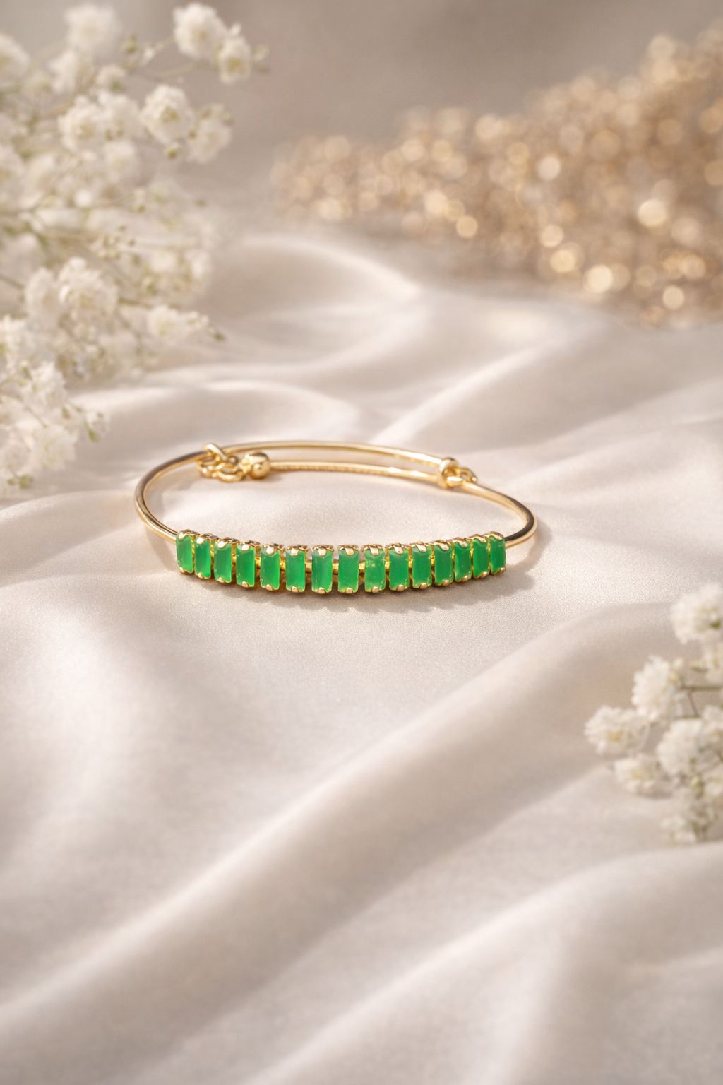Elegant Green Stone Gold Bracelet Set