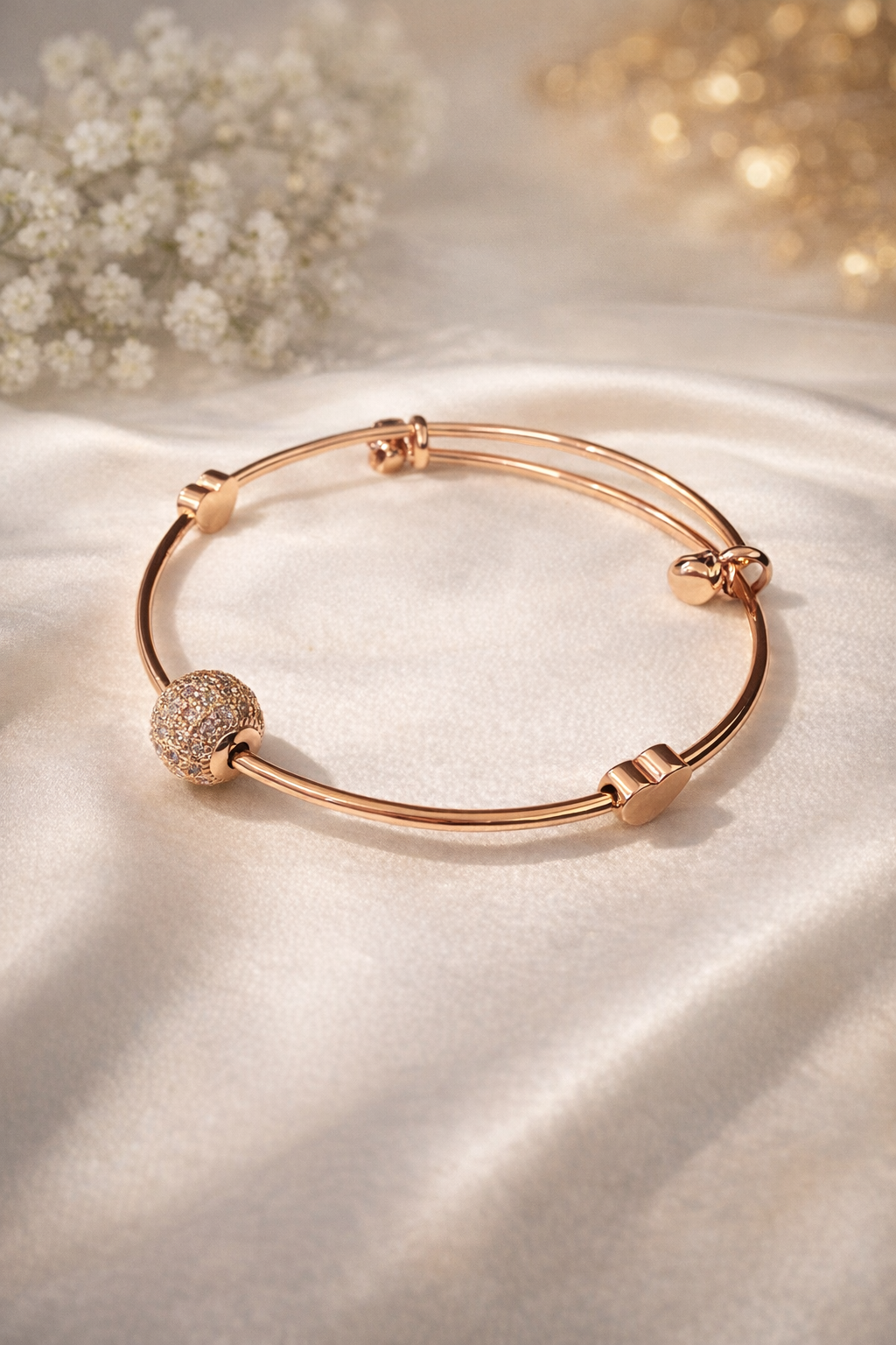 Elegant Rose Gold Bracelet with Crystal Embellished Bead