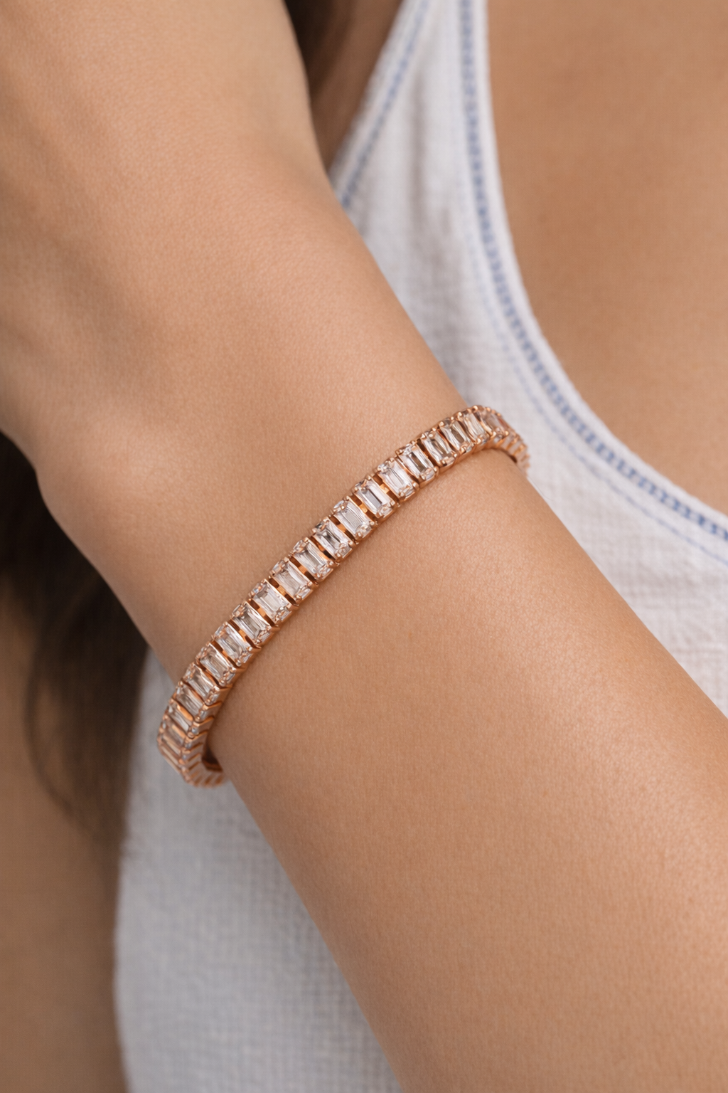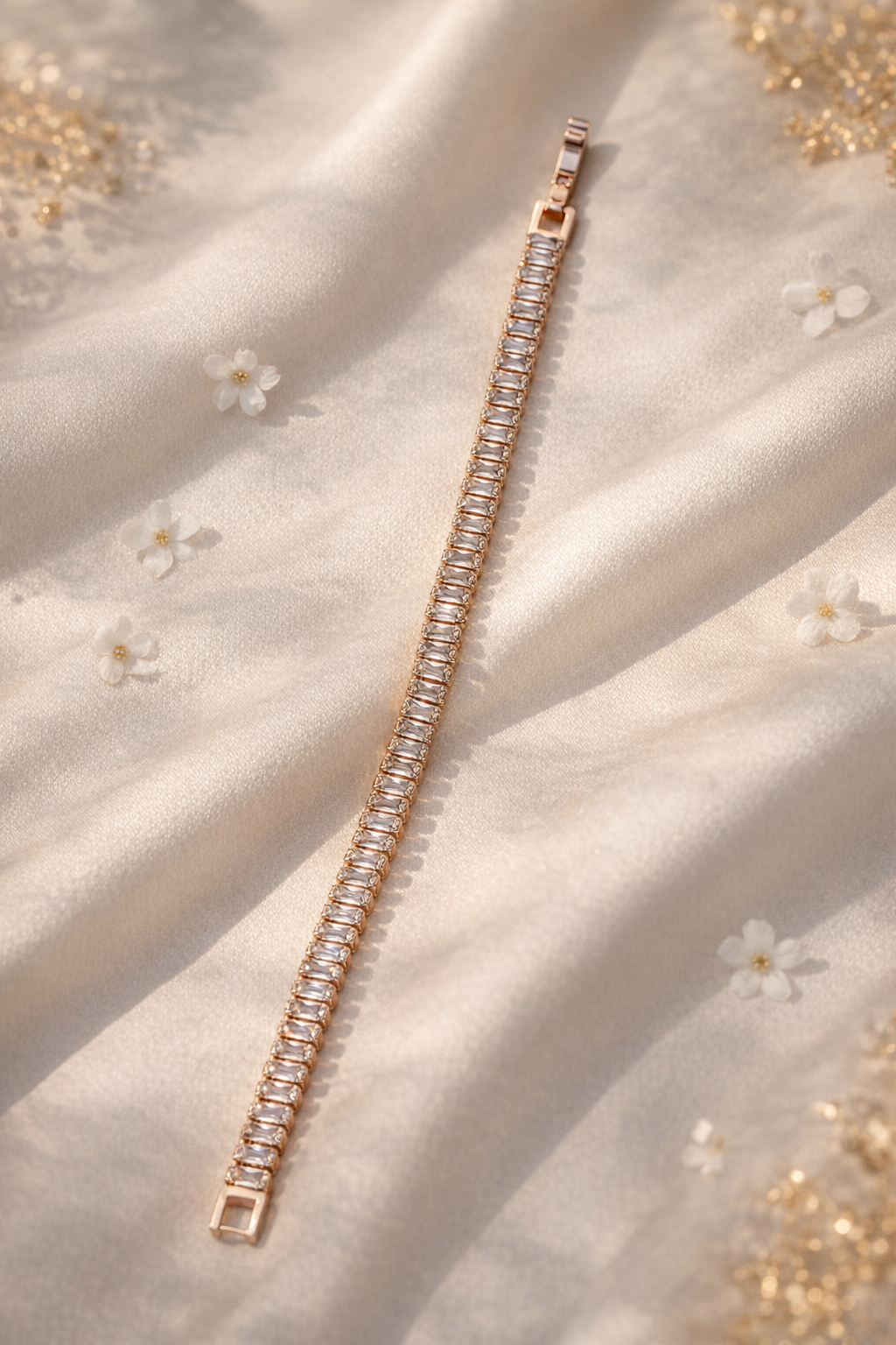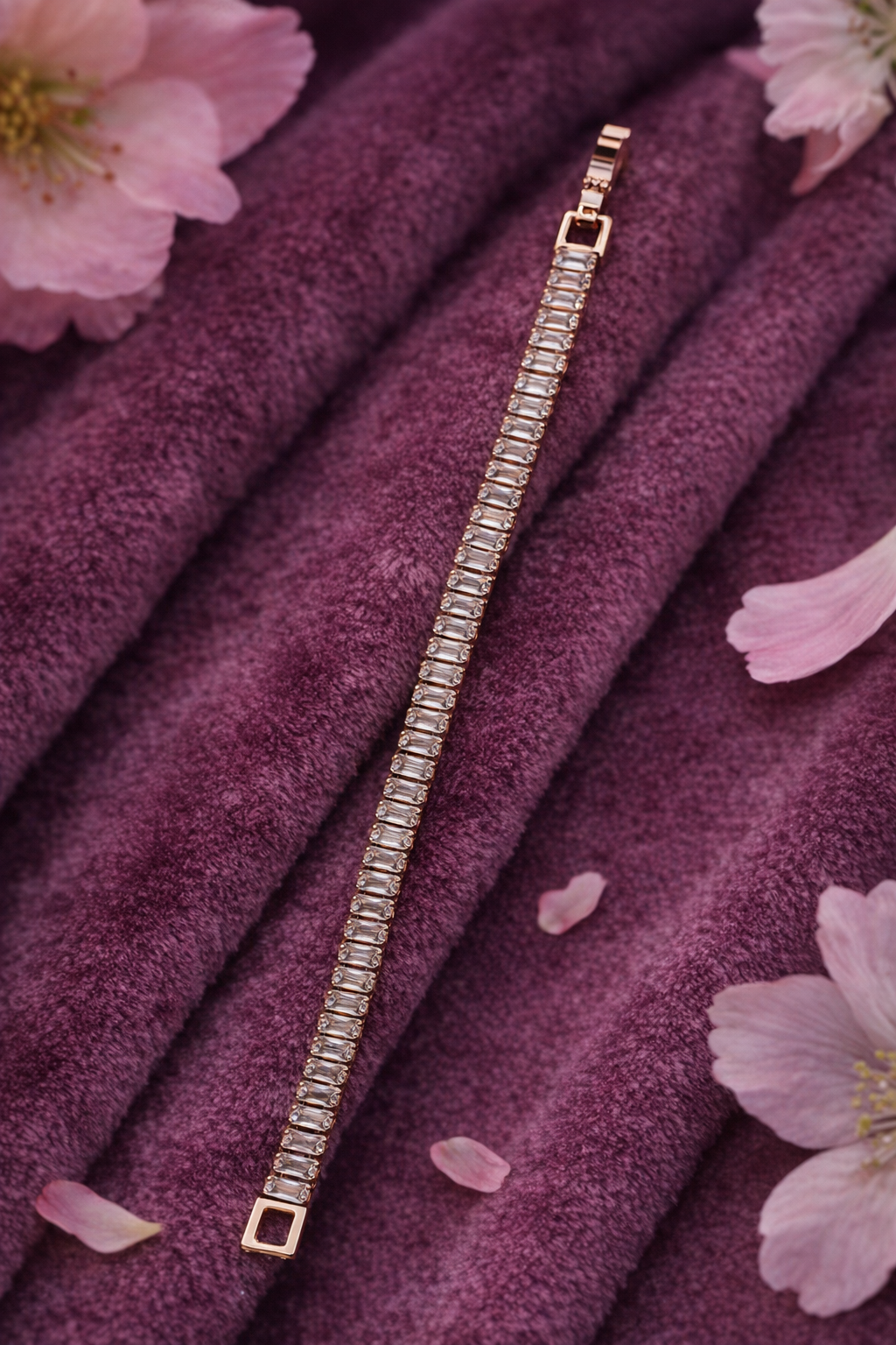 Elegant Rose Gold Tone Bracelet with Baguette Stones