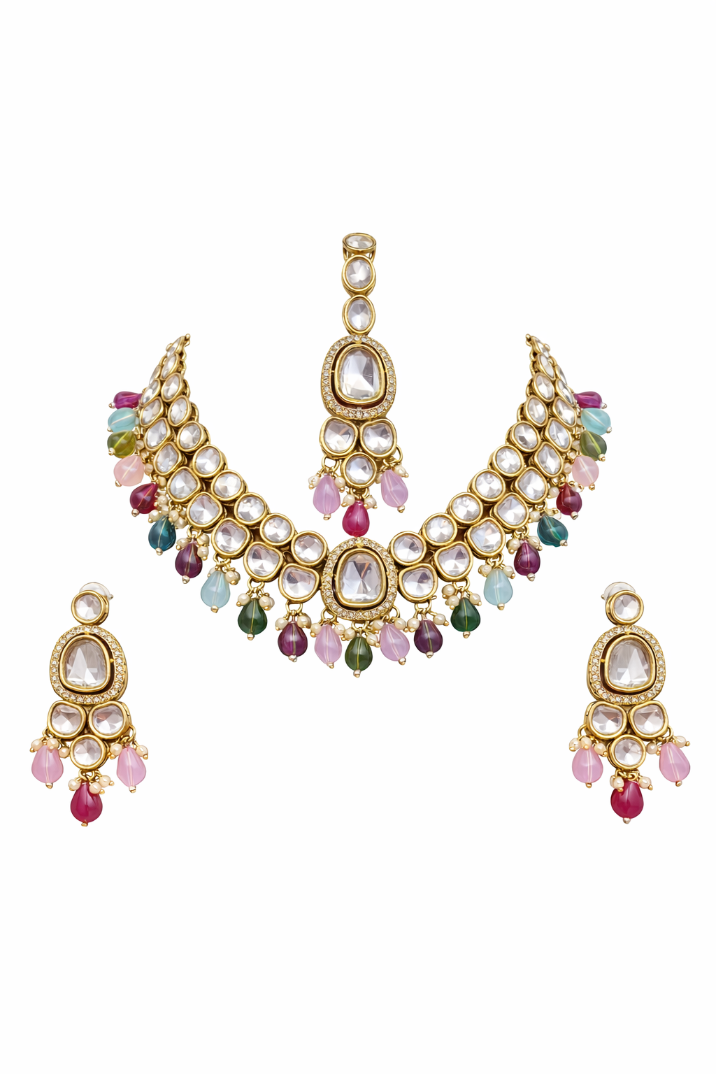 Elegant Multicolor Polki Necklace with Kundan Design