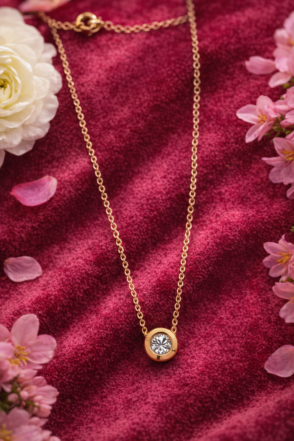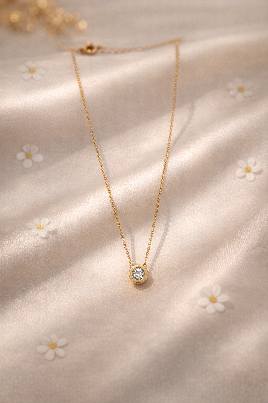 Discover the elegance of our exquisite gold pendant, a testament to timeless beauty and sophistication. This refined piece features a delicate gold chain that complements the luminous pendant, creating a subtle yet striking statement. The central gem captures the light beautifully, serving as a radiant focal point that enhances any outfit with a touch of sparkle. Crafted with meticulous attention to detail, this gold pendant boasts exceptional artistry. The chain is finely crafted for a smooth finish, ensuring comfort and versatility. The pendant's round design is encased in a sleek gold setting that provides both security and elegance. Every element is thoughtfully designed, reflecting the luxurious standards of Savyra. Perfect for both everyday elegance and special occasions, this gold pendant is ideal for those who appreciate understated luxury. Whether you're adorning yourself for a formal event or gifting it to a loved one, this piece promises to impress. Elevate your jewelry collection today with this exquisite gold pendant.