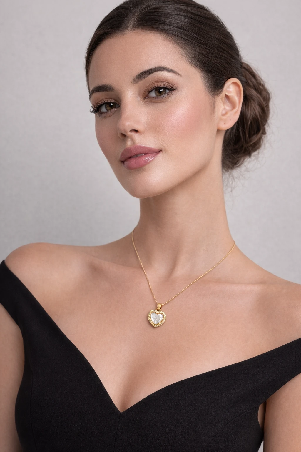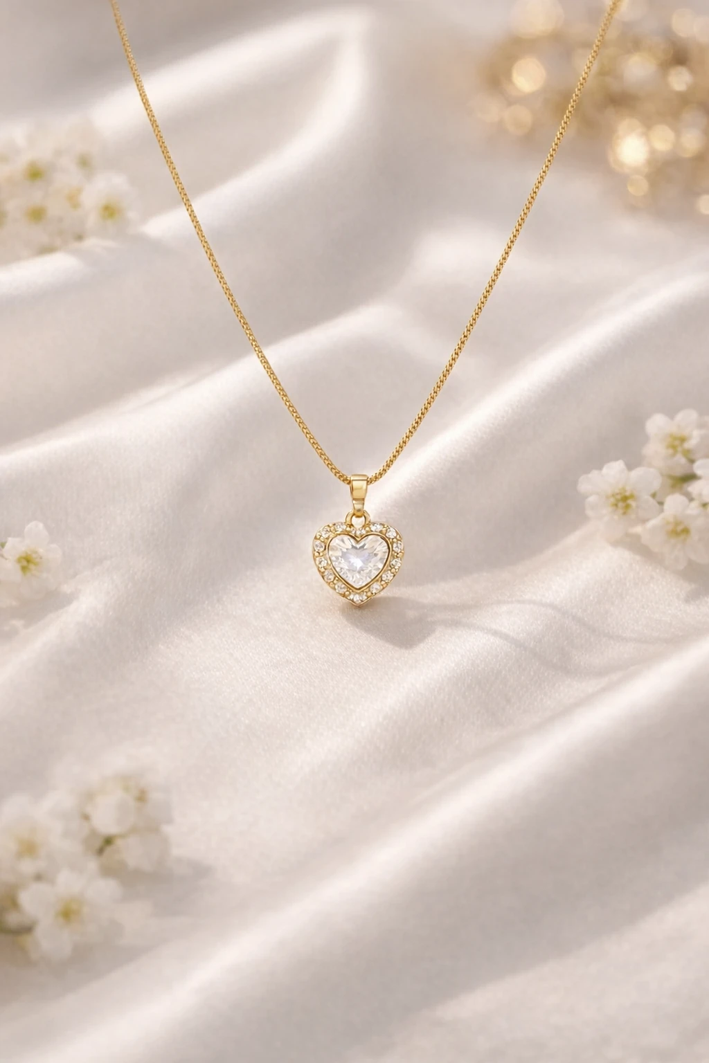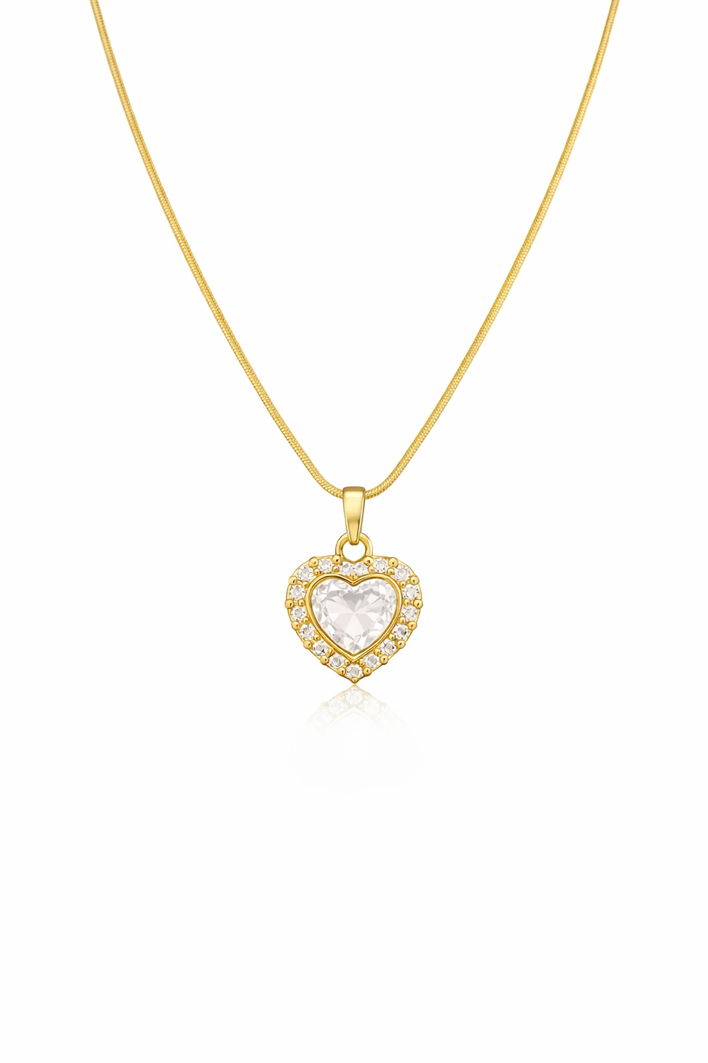 Gold Heart Pendant with White Stone Accents