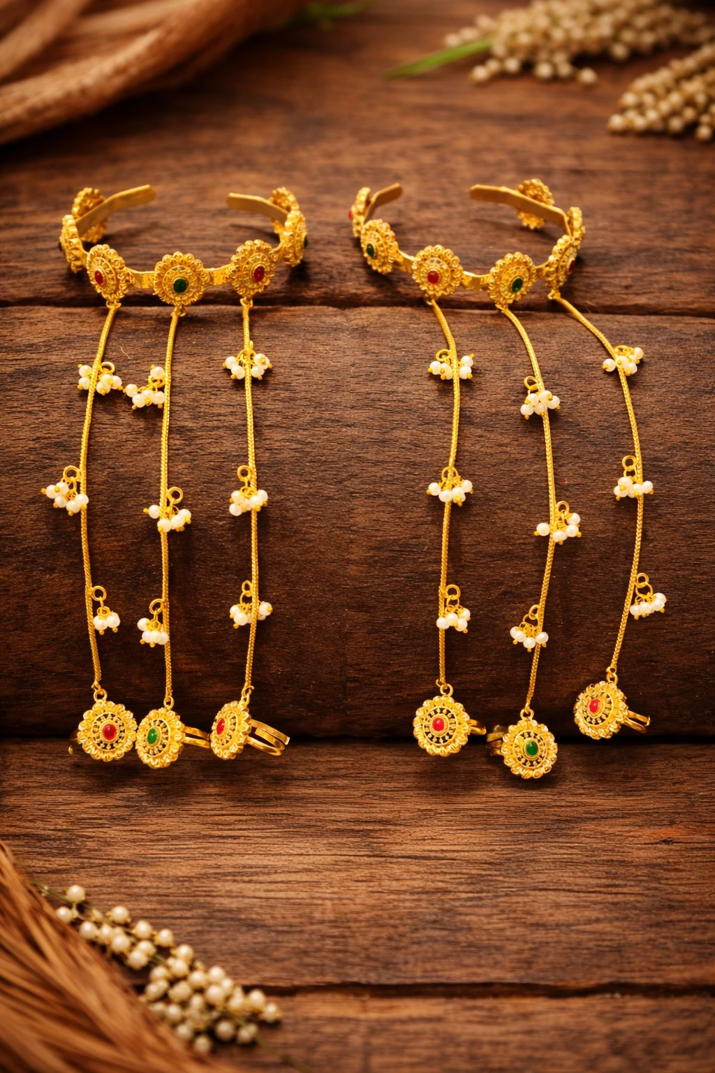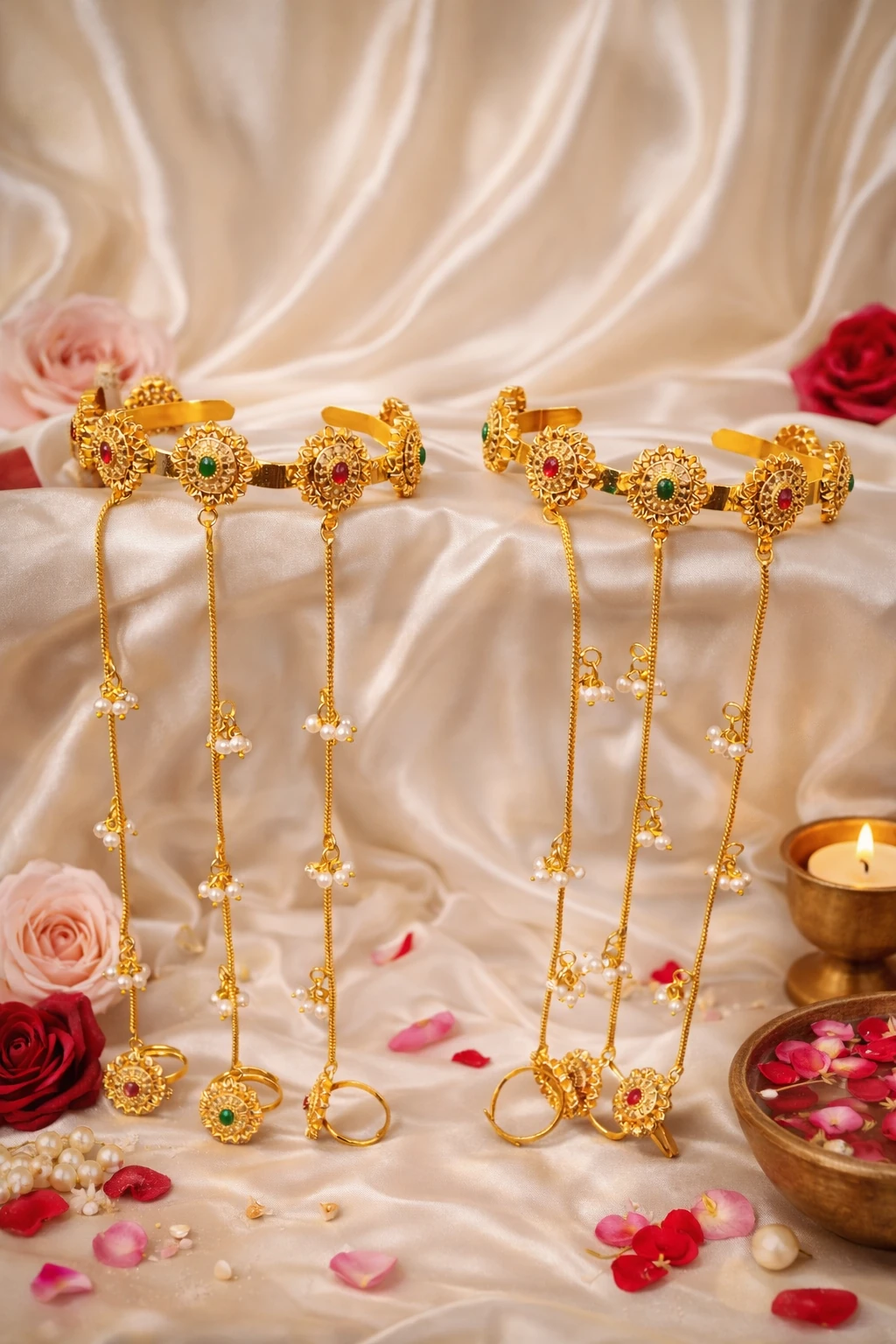 Gold-Plated Hathphool with Colorful Stones & Pearls